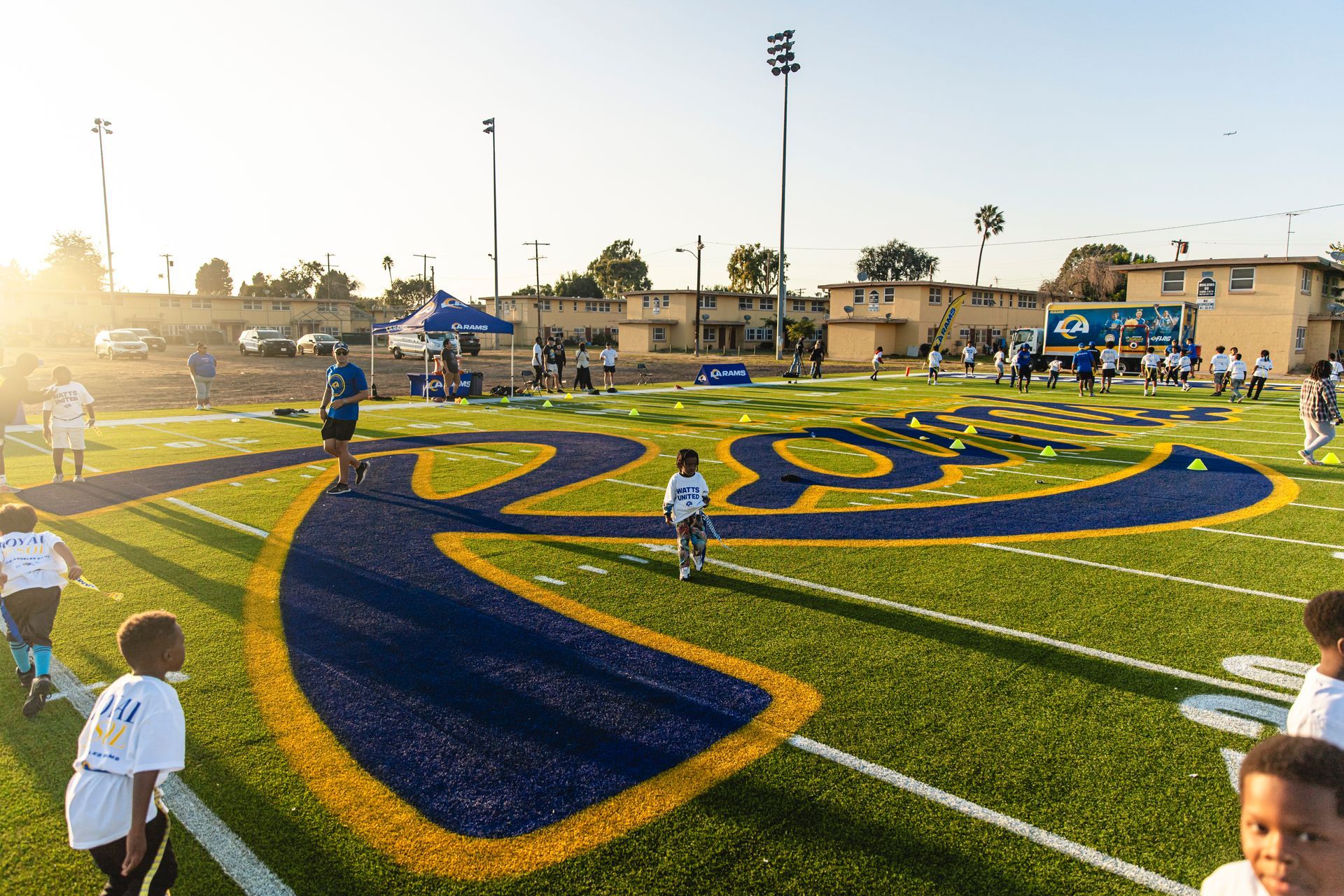 We are thrilled to unveil the brand-new 60-yard turf football field at the Nickerson Gardens Housing Development, a collaborative effort between the Los Angeles Rams and the Housing Authority of the City of Los Angeles (HACLA). This state-of-the-art field is more than just a place to play—it represents a significant investment in our community, providing youth with a safe, high-quality space to engage in sports, develop teamwork, and cultivate leadership skills. This initiative underscores our commitment to fostering positive change and creating lasting opportunities for the youth of Nickerson Gardens and the broader Watts community.